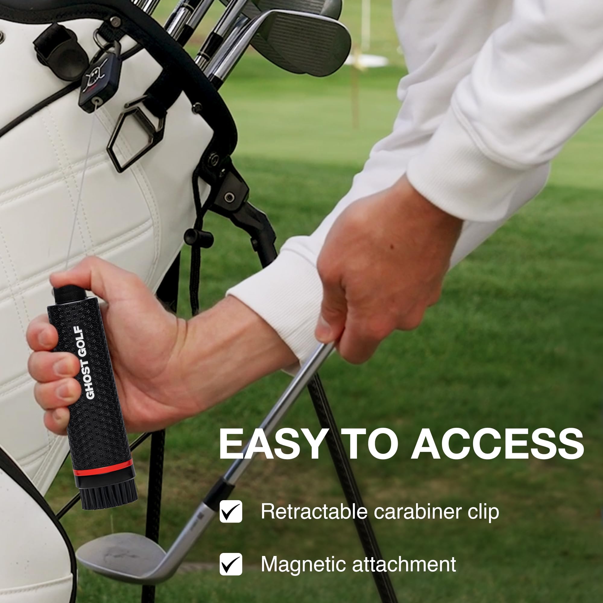 Ghost Golf Magnetic Golf Club Brush with Water Reservoir & Shoe Brush - Dual Head Groove Cleaner, Nylon Bristle, Retractable Carabiner Clip - Golf Cleaning Tool for Irons, Wedges & Golf Shoe Cleats