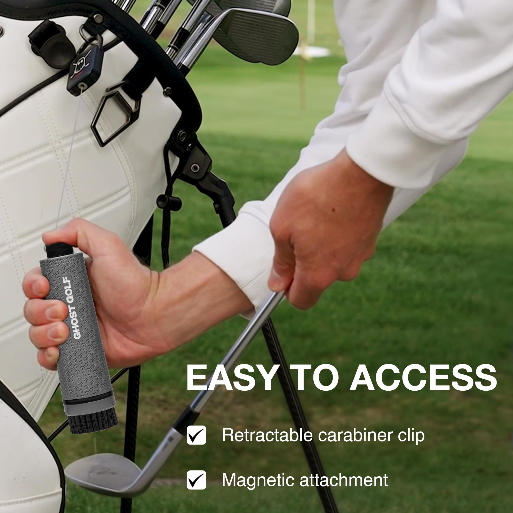 Ghost Golf Magnetic Golf Club Brush with Water Reservoir & Shoe Brush - Dual Head Groove Cleaner, Nylon Bristle, Retractable Carabiner Clip - Golf Cleaning Tool for Irons, Wedges & Golf Shoe Cleats